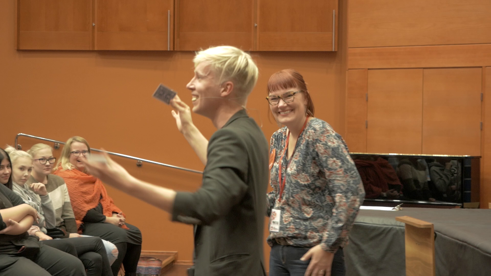 Myös huumori on isossa osassa esitystä. Esityksessä ei koskaan nolata ketään, vaan nauruhermot räjäytetään positiivisen kautta.
